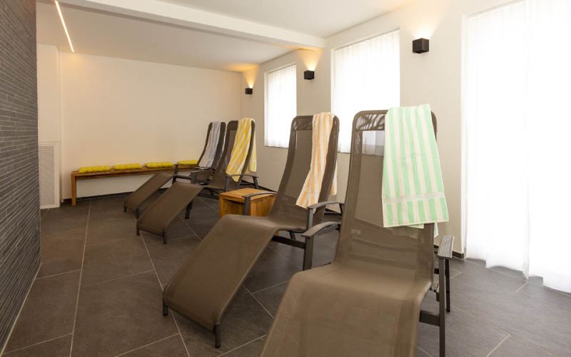 Unsere Wellness-Lounge mit gemütlichen Liegen und entspannender Musik bietet den perfekten Ort, um ein gutes Buch zu lesen oder einfach nur die Stille zu geniessen.